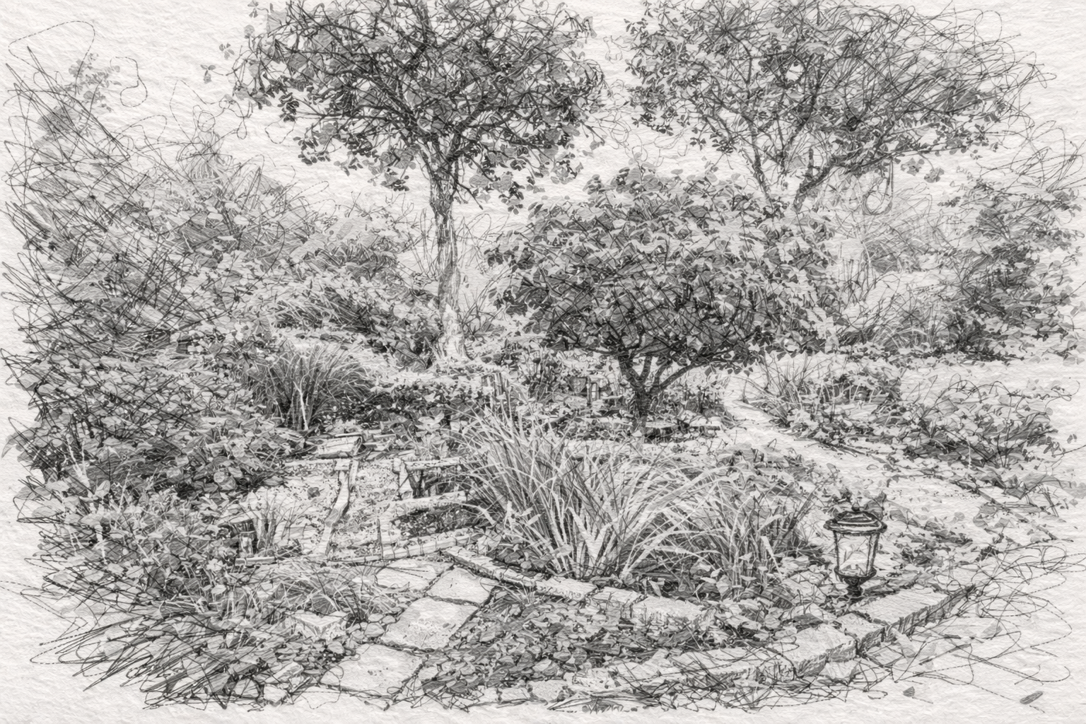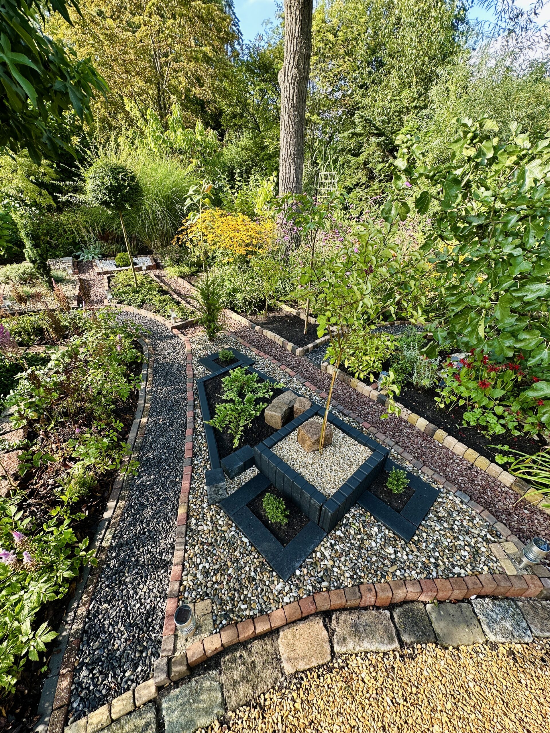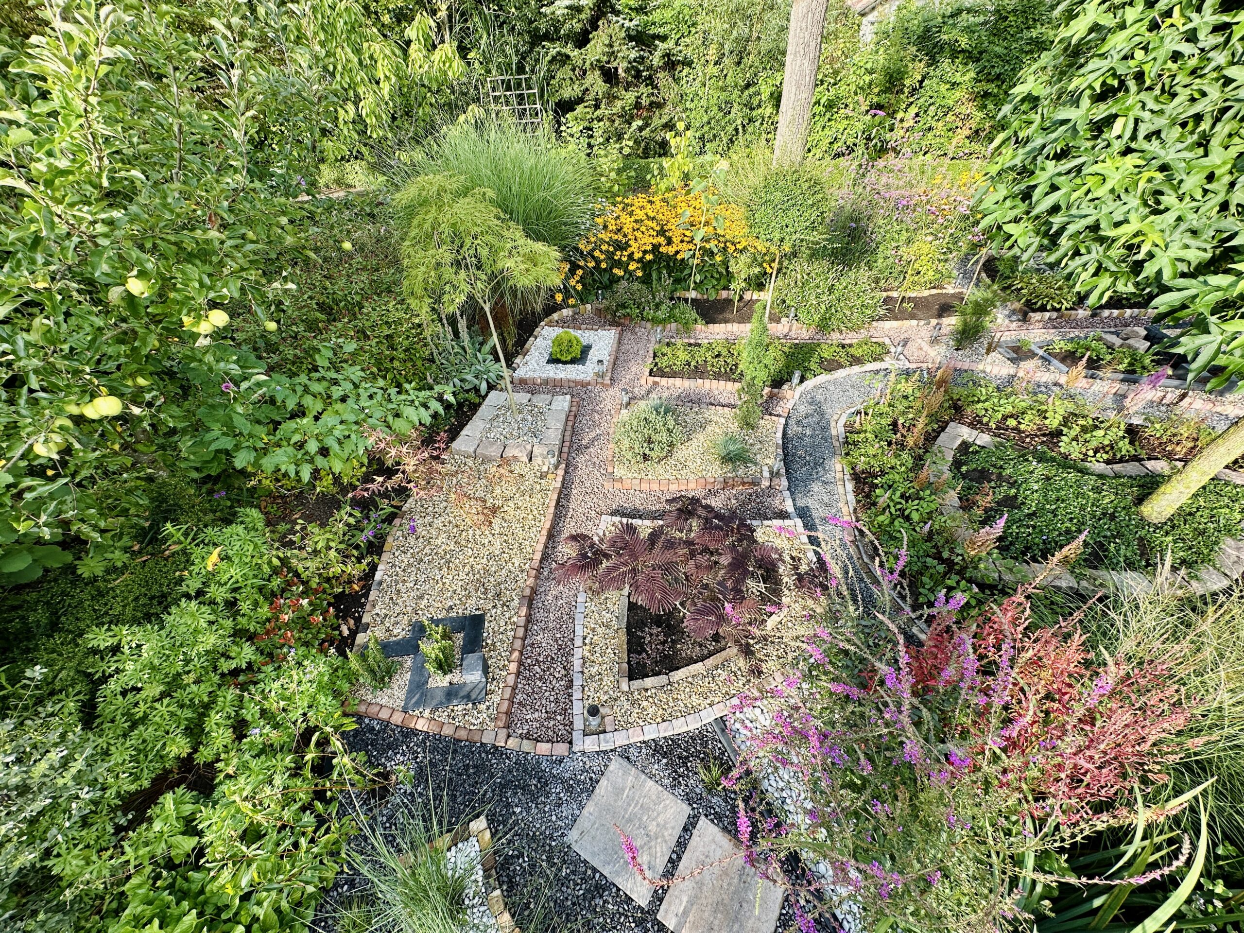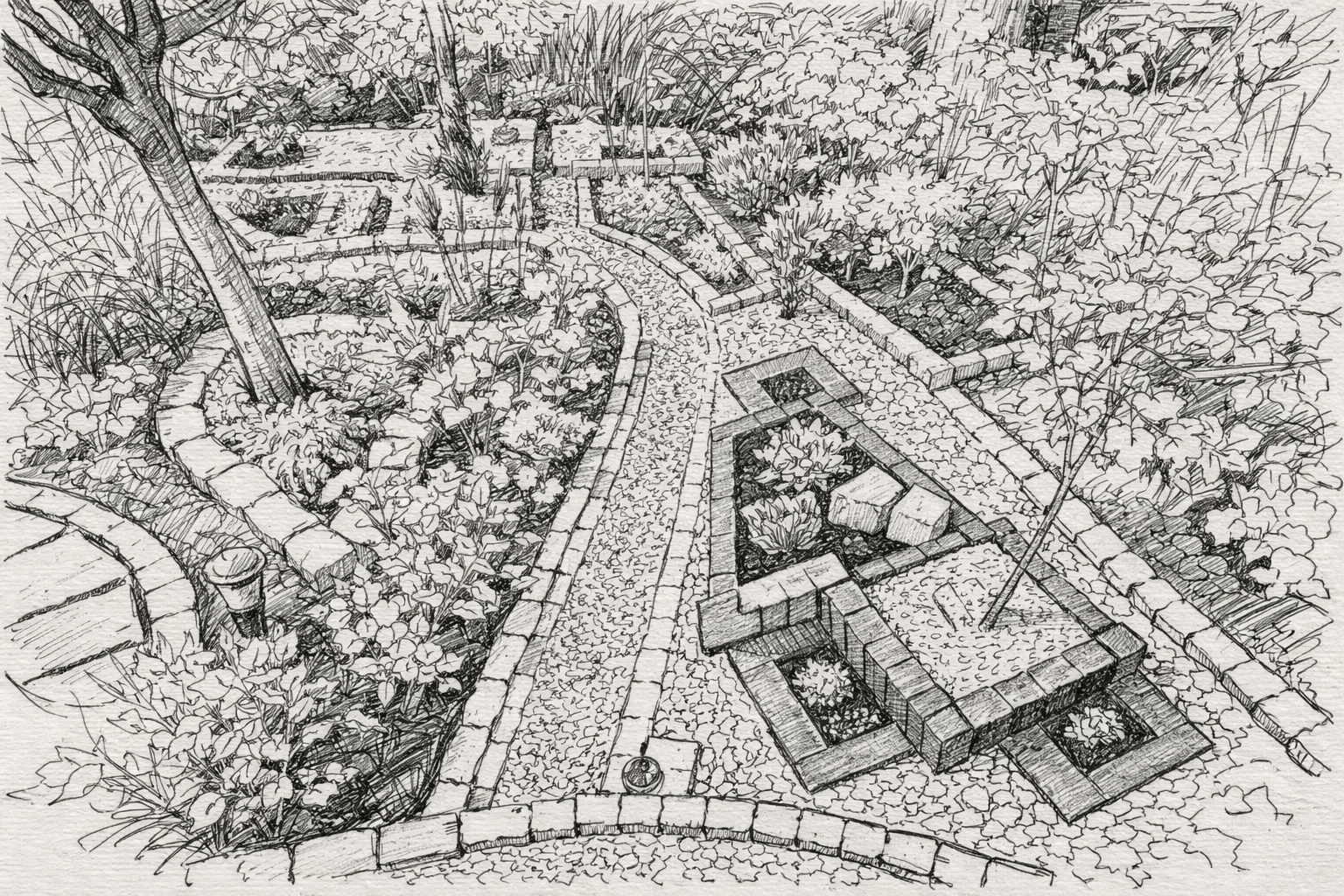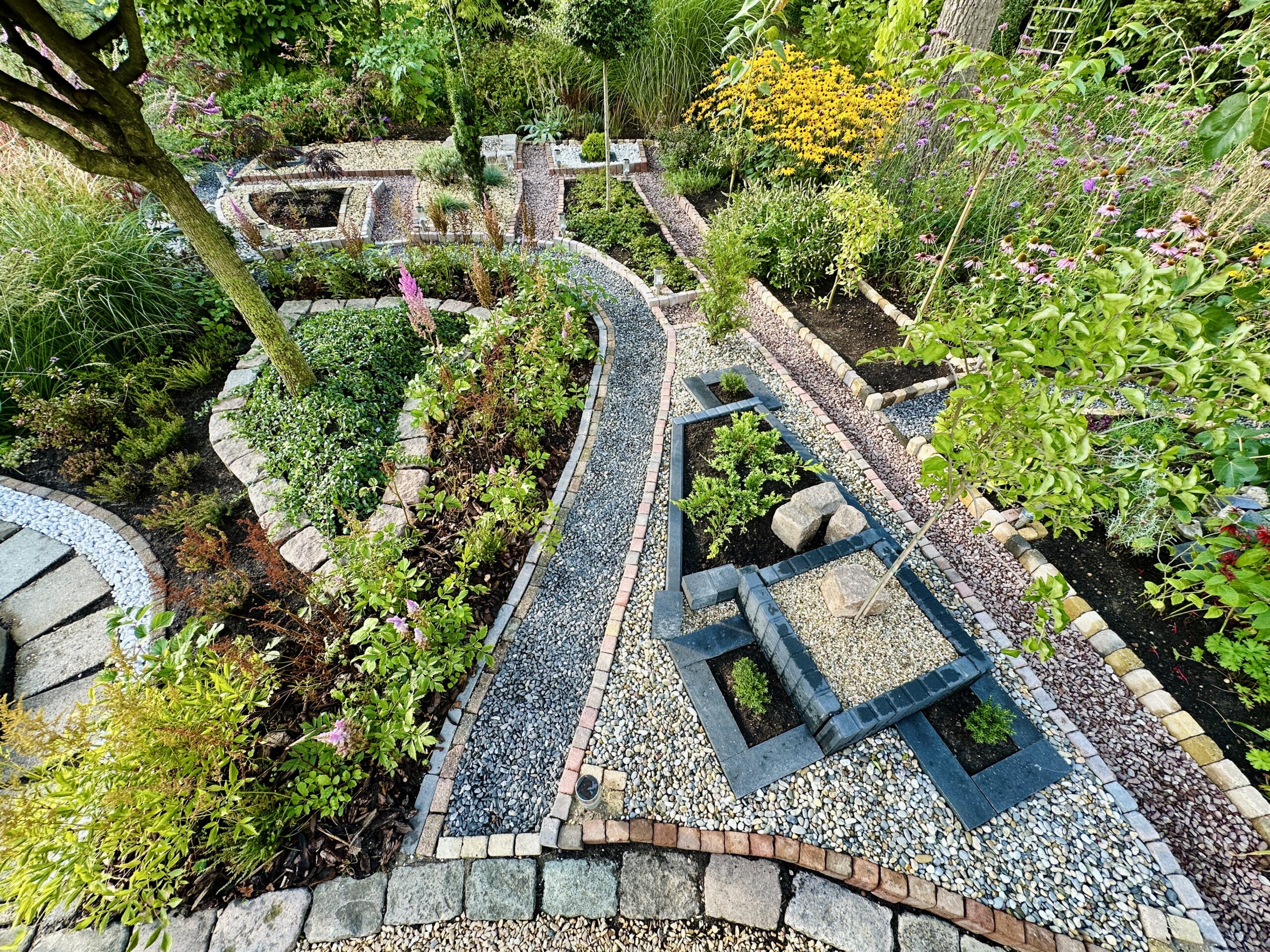 Structured paths and layered planting unfold in quiet harmony.